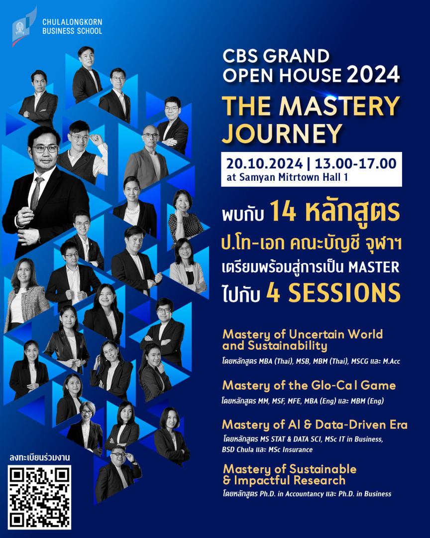 Join the Chulalongkorn Business School (CBS) Open House featuring 14 master's and doctoral programs in business administration, where you'll embark on a journey of new experiences and gain insights into key business trends.